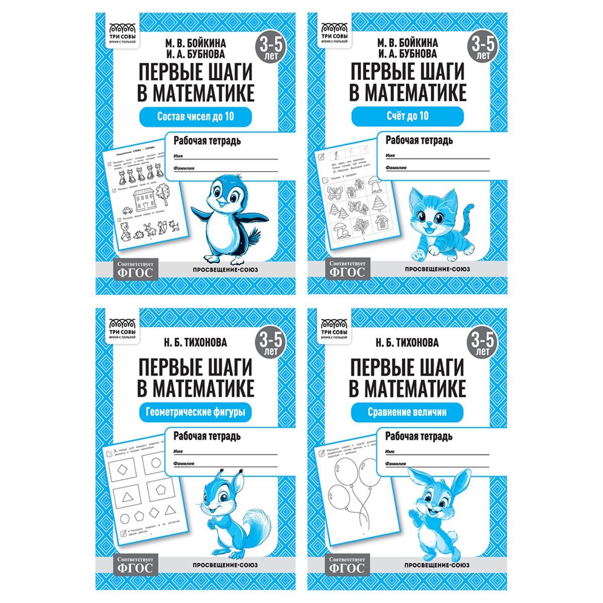 Рабочая тетрадь, А5, ТРИ СОВЫ "Первые шаги в математике. 3-5 лет", 16стр.