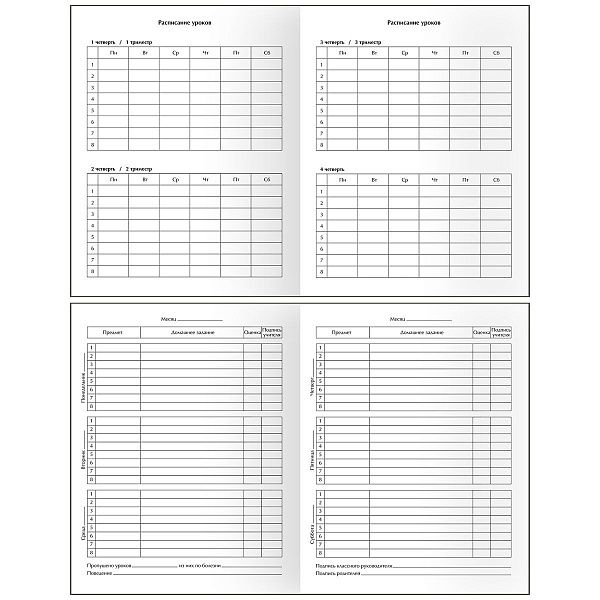 - Дневники и графики обеспечивают связь между школой и домом, упрощая контроль успеваемости и расписания.