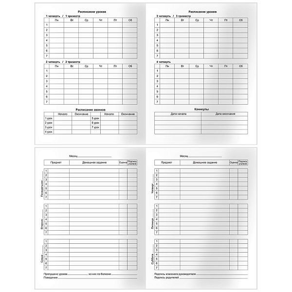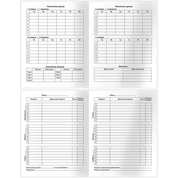 - Дневники и графики обеспечивают связь между школой и домом, упрощая контроль успеваемости и расписания.