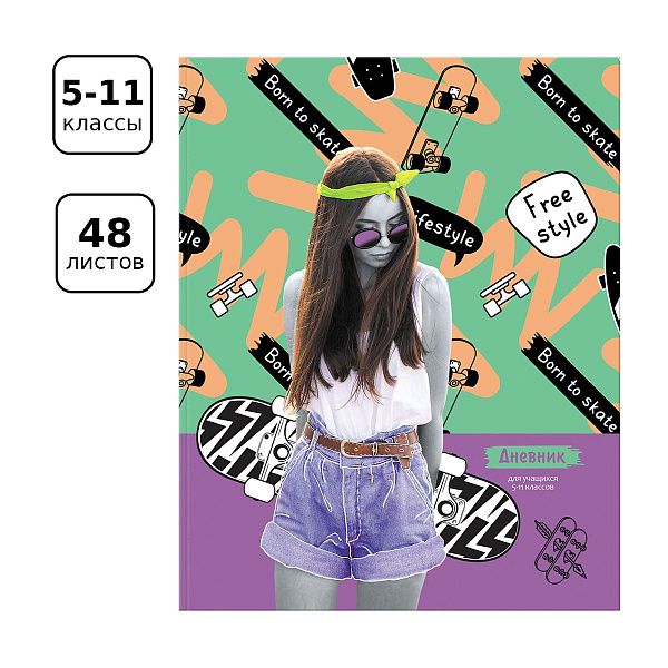 - Дневники для 1–11 классов, такие как "Young free, 40 листов" или "Anime girl, 48 листов", помогают вести учет оценок и заданий.