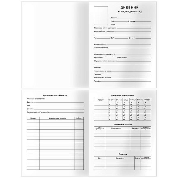 - Дневники с ляссе и дополнительными разделами удобны для заметок и планирования.