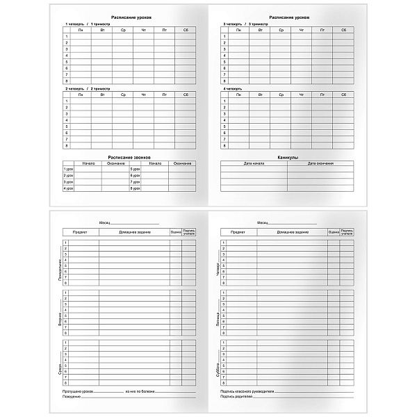 - Дневники и графики обеспечивают связь между школой и домом, упрощая контроль успеваемости и расписания.