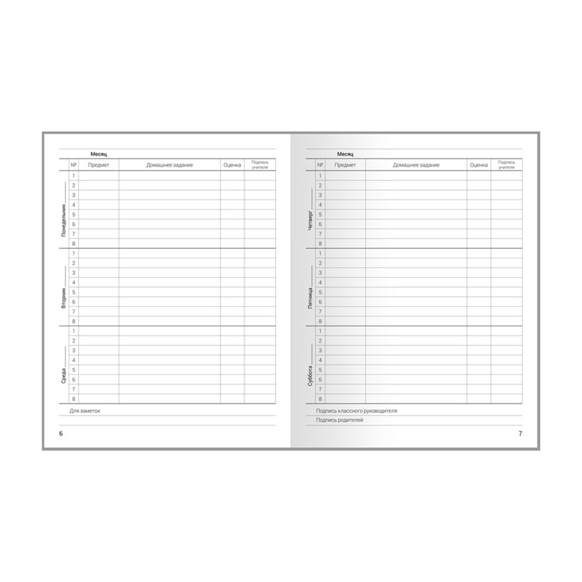 Обложка с прямыми уголками изготовлена из твёрдого картона с глянцевой ламинацией. Страницы пронумерованы. Дневник выполняет функции журнала регистрации оценок, полученных на уроках, замечаний по поведению и прилежанию, средства общения учителей и родителей, а также является показателем успеваемости ученика.