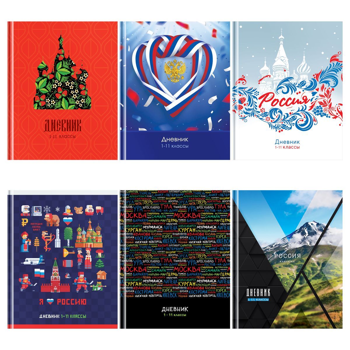 Дневник 1-11 кл. 40л. (твердый) BG "Mix-6. Моя Россия", глянцевая ламинация