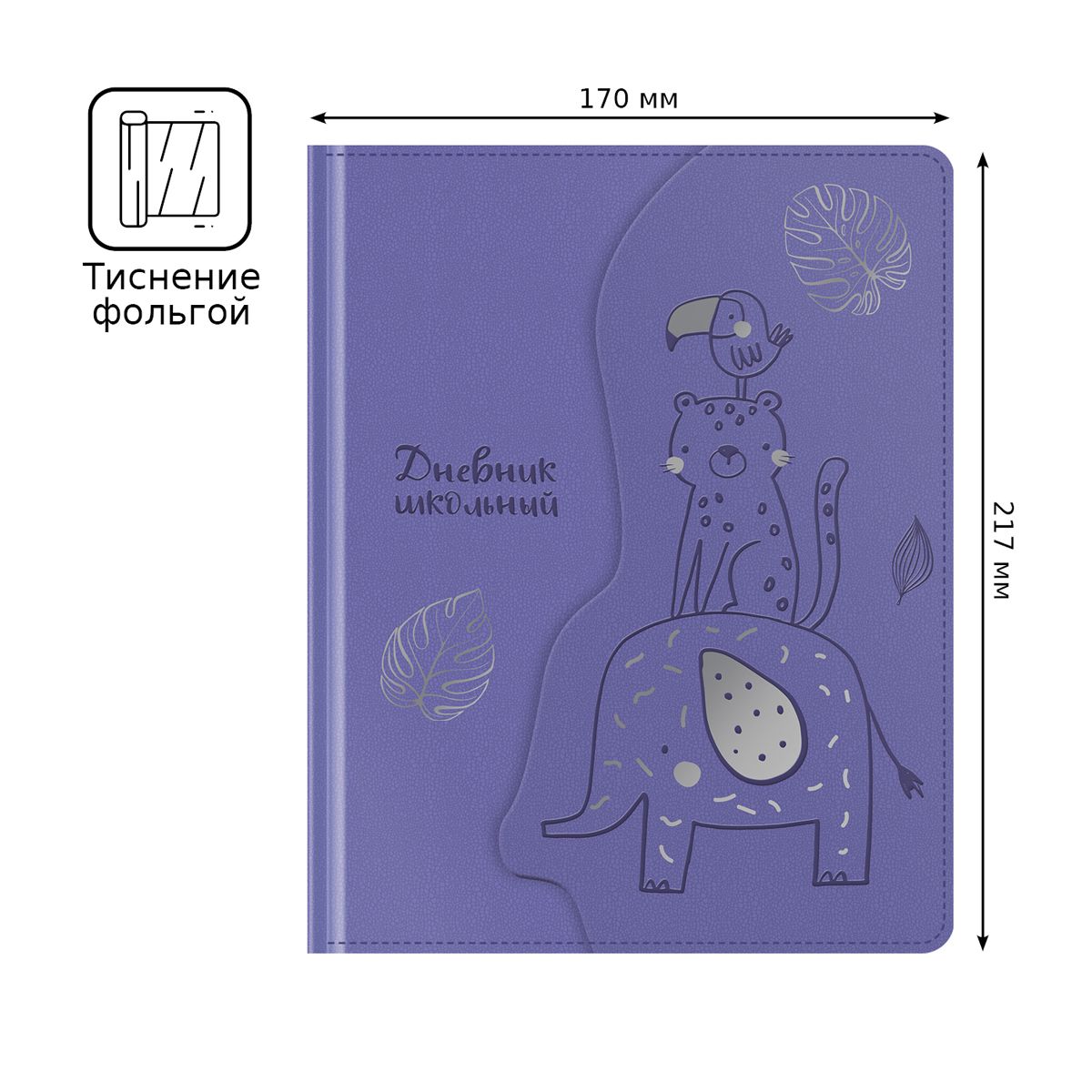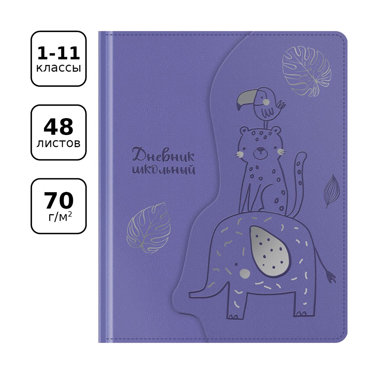 Дневник 1-11 кл. 48л. (твердый) BG "African animals", иск. кожа, тиснение фольгой, фигурный магнитный клапан