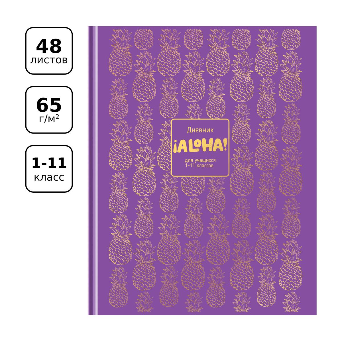 Дневник 1-11 кл. 48л. (твердый) BG "Aloha", глянцевая ламинация, тиснение фольгой