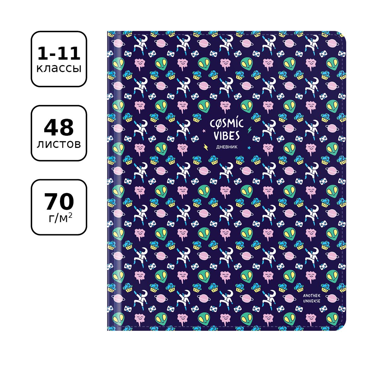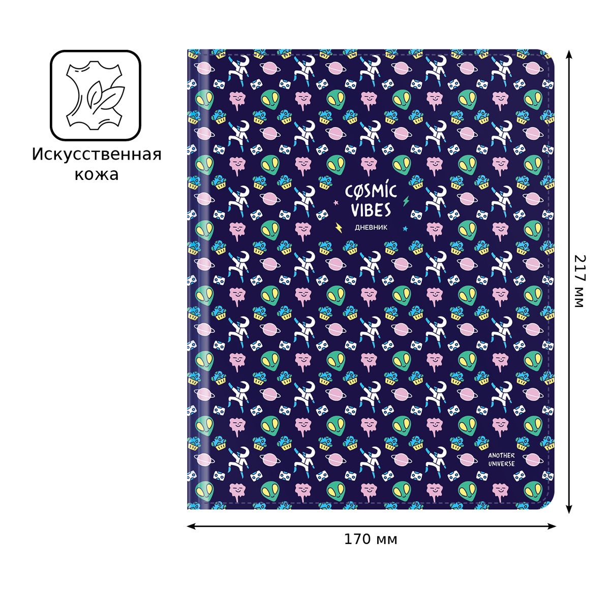 Дневник 1-11 кл. 48л. (твердый) BG "Cosmic vibes", иск. кожа, полноцветная печать