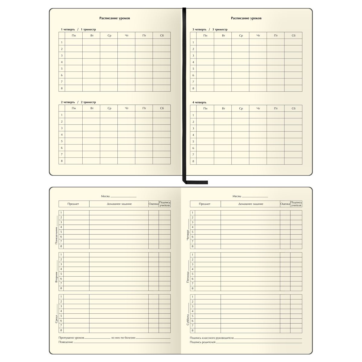 Твёрдая обложка выполнена из экокожи с цветной печатью. Дизайн дневника дополнен тиснением фольгой. Скругленные уголки обеспечивают безопасность во время использования, а также предотвращают быстрое изнашивание обложки. Закладка-ляссе поможет сразу открыть нужную страницу. Дневник упакован в индивидуальный пакет с этикеткой.