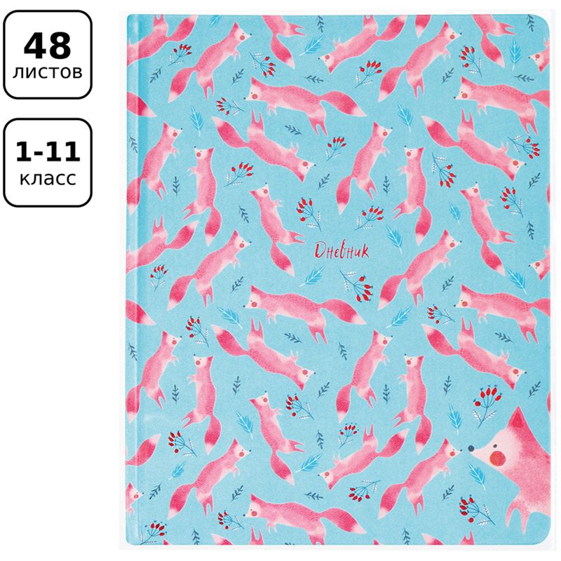 Дневник 1-11 кл. 48л. (твердый) BG "Lovely Fox", иск. кожа, печать, тиснение цв. фольгой, ляссе