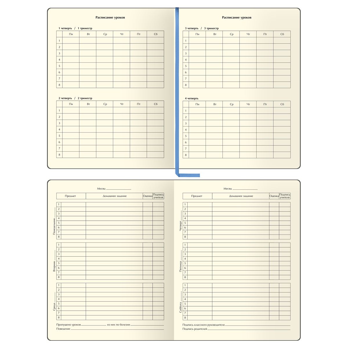 Твёрдая обложка выполнена из экокожи с цветной печатью. Скругленные уголки обеспечивают безопасность во время использования, а также предотвращают быстрое изнашивание обложки. Закладка-ляссе поможет сразу открыть нужную страницу. Дневник упакован в индивидуальный пакет с этикеткой.