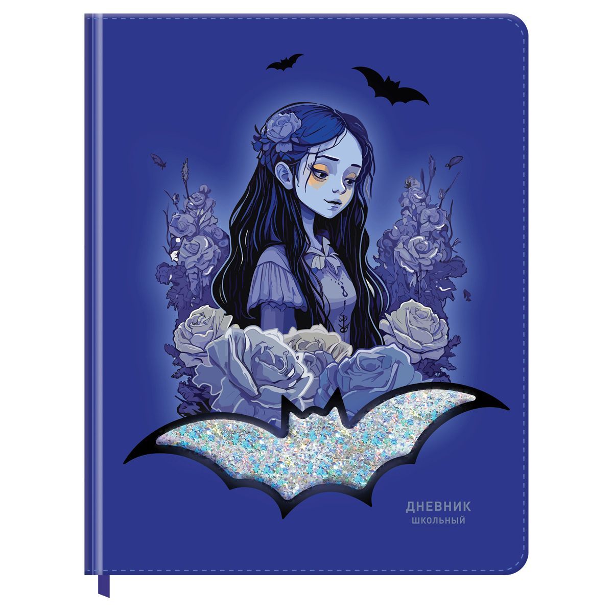Дневник 1-11 кл. 48л. (твердый) BG "Таинственная девочка", иск.кожа, аппликация с блестками, печать, ляссе