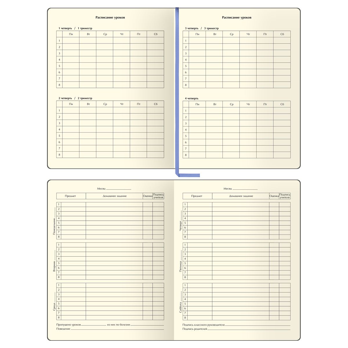 Твёрдая обложка выполнена из экокожи с цветной печатью. Скругленные уголки обеспечивают безопасность во время использования, а также предотвращают быстрое изнашивание обложки. Закладка-ляссе поможет сразу открыть нужную страницу. Дневник упакован в индивидуальный пакет с этикеткой.