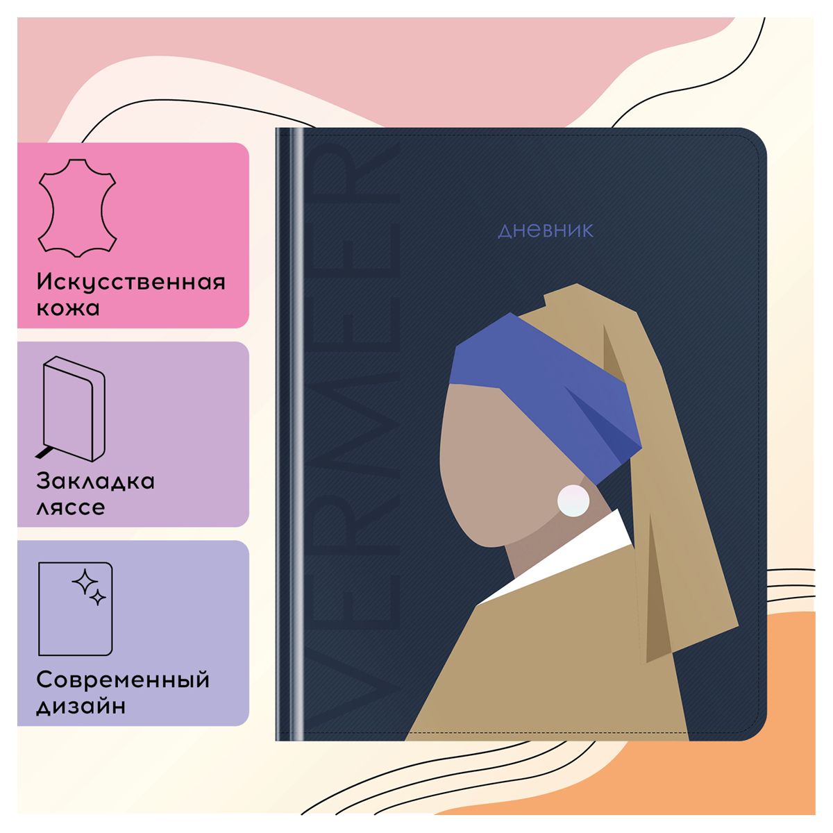 Дневник 1-11 кл. 48л. (твердый) Greenwich Line "Abstraction", иск. кожа, 3D УФ-печать, выб. лак, тон. блок, ляссе