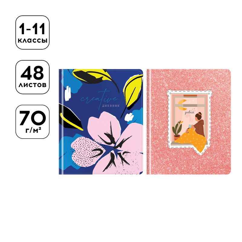 Дневник 1-11 кл. 48л. (твердый) Greenwich Line, дизайнерская ткань / экокожа с аппликацией, ассорти