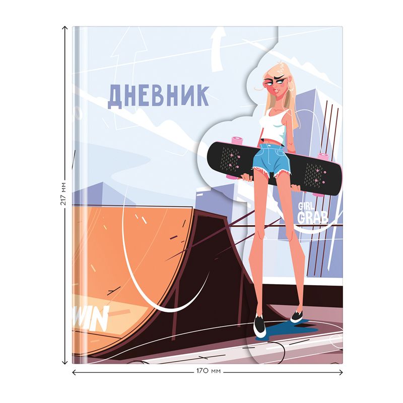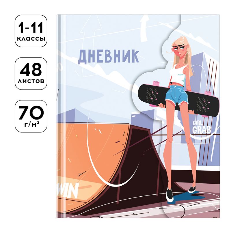 Дневник 1-11 кл. 48л. (твердый) Greenwich Line "Girl Grab", диз. бумага, печать, матовая ламинация, 3D-лак, фигурный магнитный клапан, тон. блок, лясс