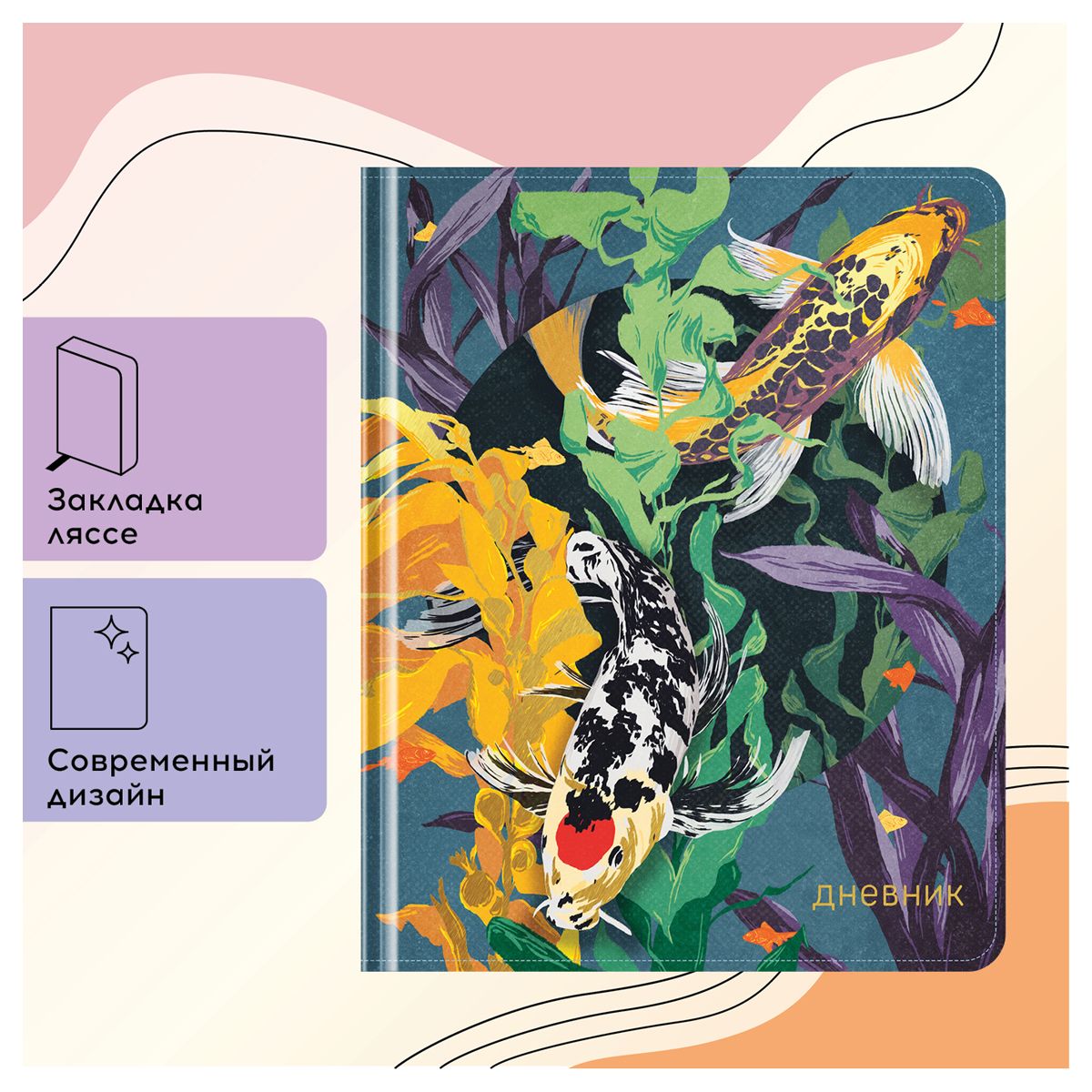 Дневник 1-11 кл. 48л. (твердый) Greenwich Line "Koi carp", ткань, печать, тисн. фольгой, тон. блок, ляссе