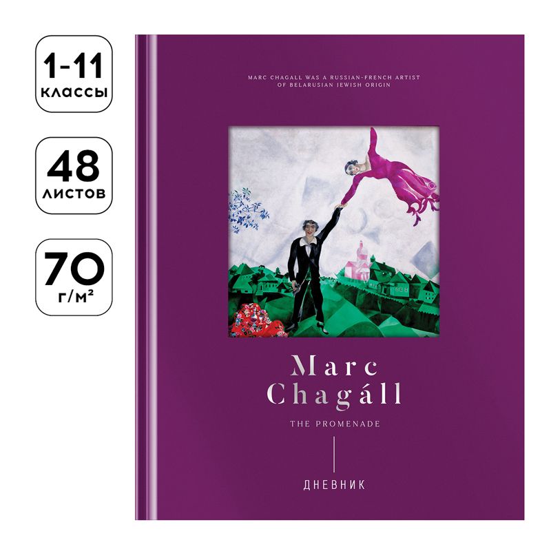 Дневник 1-11 кл. 48л. (твердый) Greenwich Line "Marc Chagal", диз. бумага, фигурная вырубка, печать, тиснение фольгой, тон. блок, ляссе