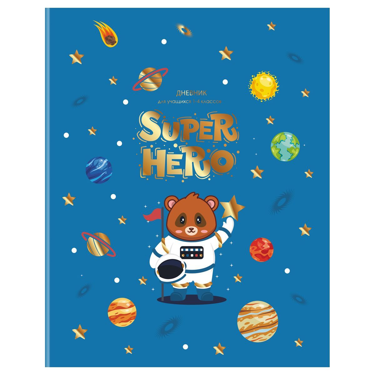Дневник 1-4 кл. 48л. ЛАЙТ BG "Наш герой", глянцевая ламинация, тиснение фольгой