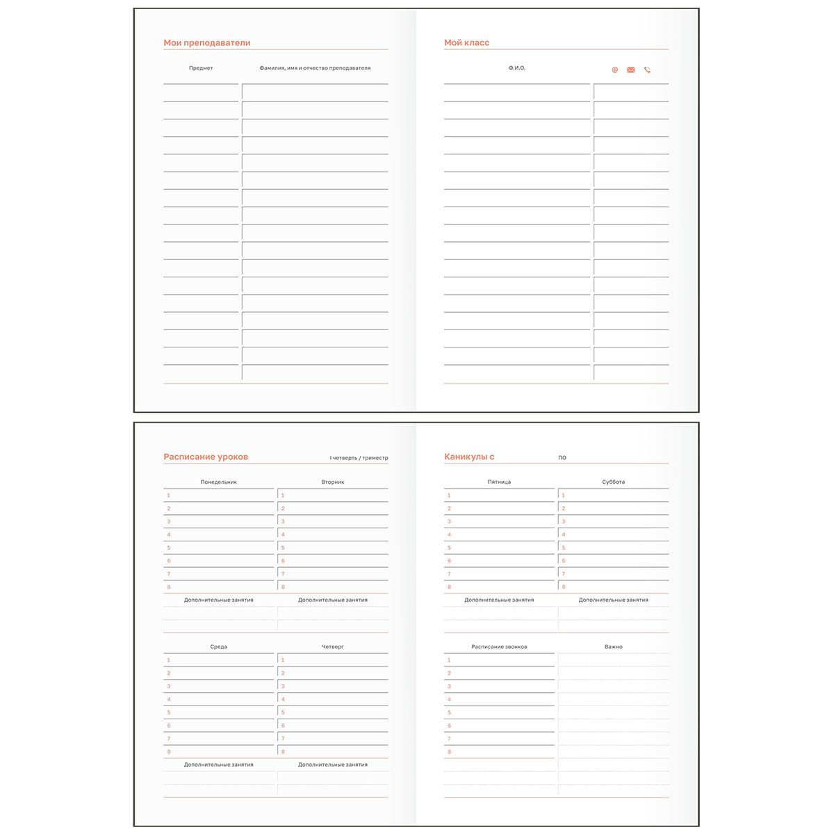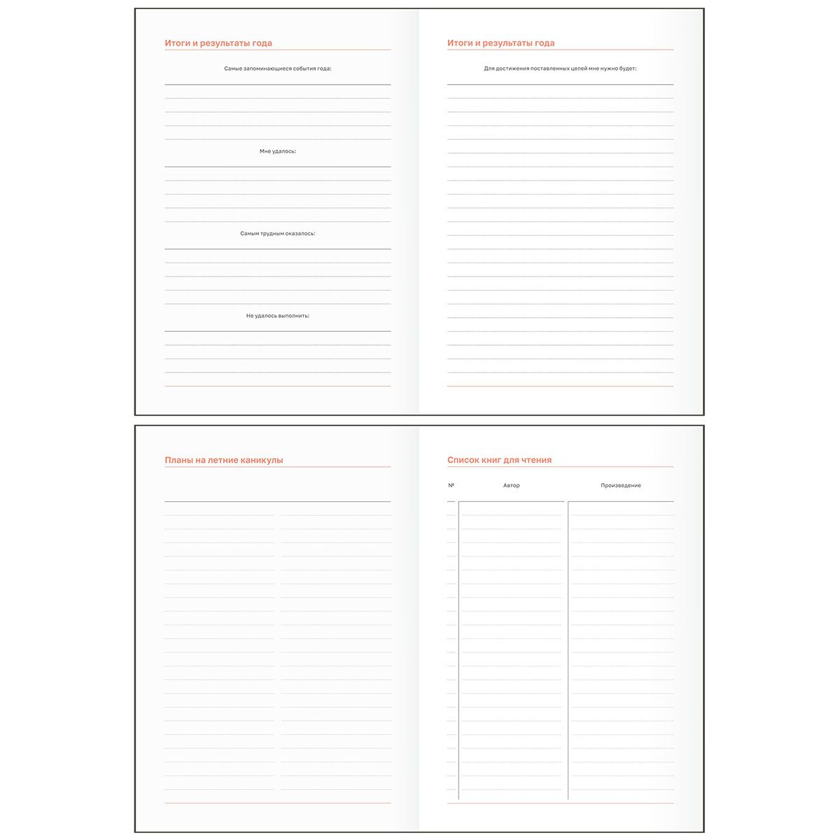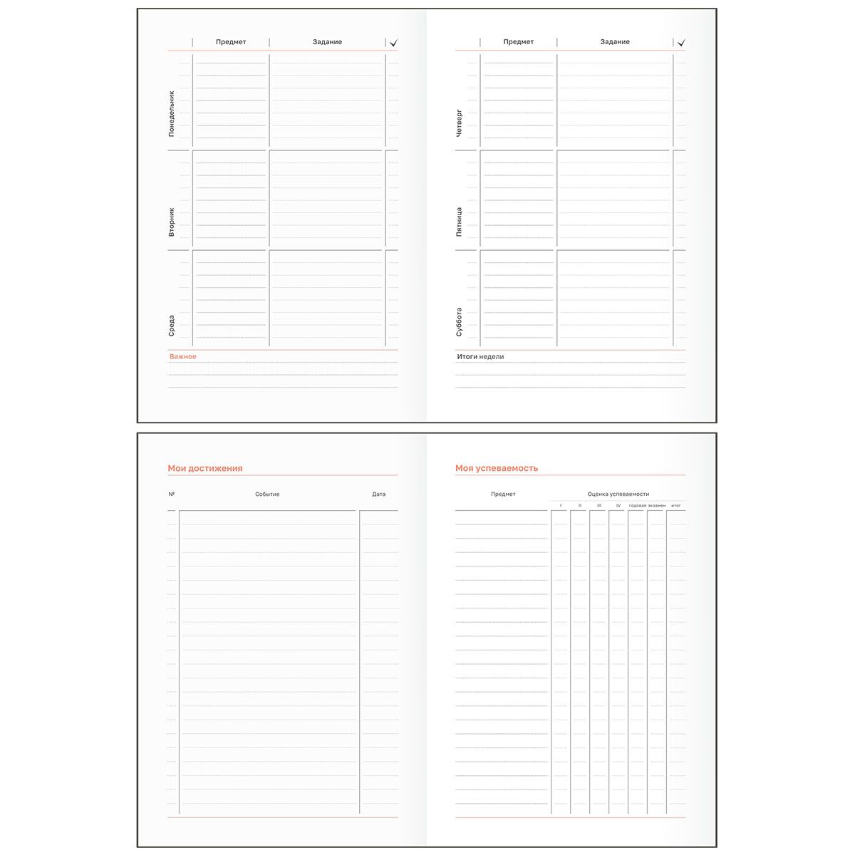 С помощью планера школьник сможет записывать домашние задания, информацию о проектах, важных датах и мероприятиях. Внутри есть всё для удобного планирования: ежемесячные и еженедельные разделы, списки олимпиад и конкурсов, трекеры привычек и чтения, страницы для подведения итогов года. Минималистичный дизайн понравится школьникам любого года обучения. Привлекательная модель с мотивирующими надписями понравится школьникам начальных, средних и старших классов.