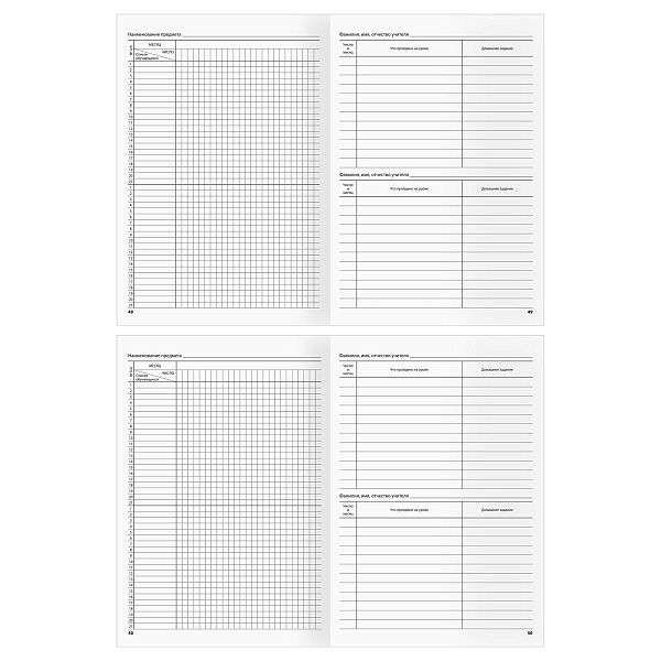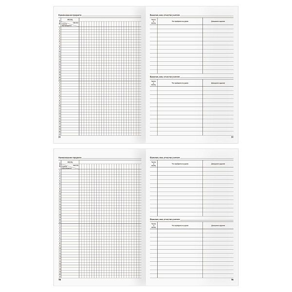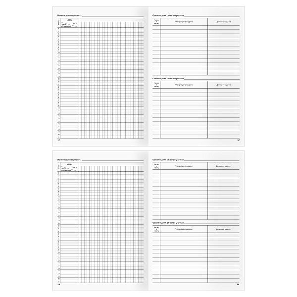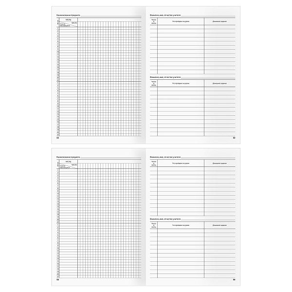 - Журналы содержат разделы для оценок, замечаний и расписания, что упрощает ведение записей и контроль.