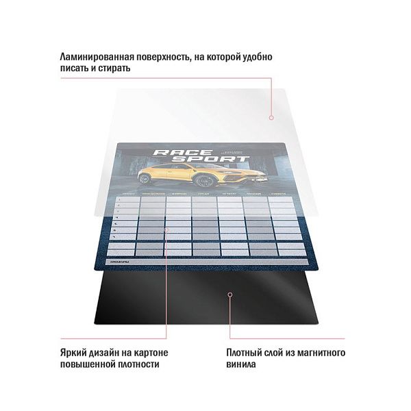 - Магнитные планеры, например, "ArtSpace 'Race Sport'", легко крепятся на холодильник и удобны дома.