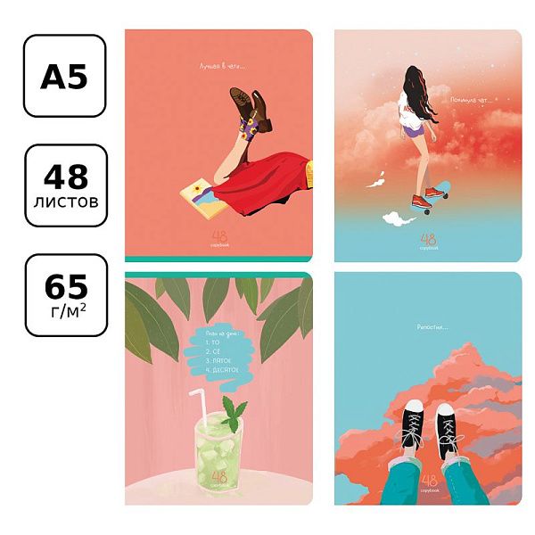 - Количество листов: Мы предлагаем тонкие тетради (12, 18, 24 листа) для младших классов и предметные тетради (48 листов и более) для старших школьников и студентов.