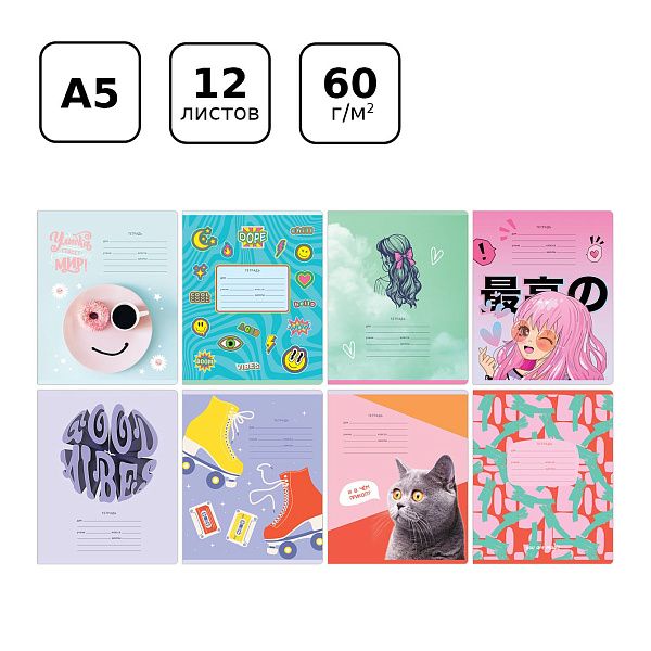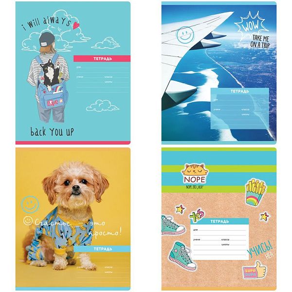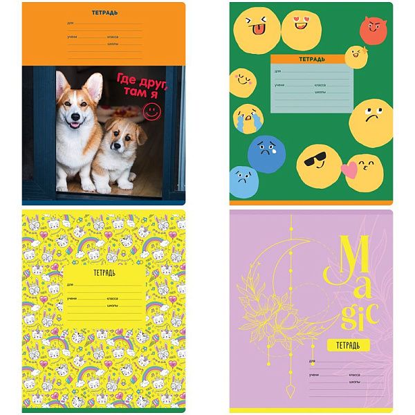 - Количество листов: Мы предлагаем тонкие тетради (12, 18, 24 листа) для младших классов и предметные тетради (48 листов и более) для старших школьников и студентов.