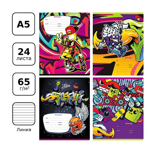 - Широкий ассортимент: Большой выбор тетрадей для учеников всех возрастов. -