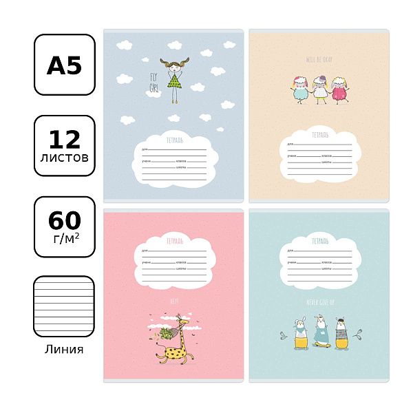 - Количество листов: Мы предлагаем тонкие тетради (12, 18, 24 листа) для младших классов и предметные тетради (48 листов и более) для старших школьников и студентов.