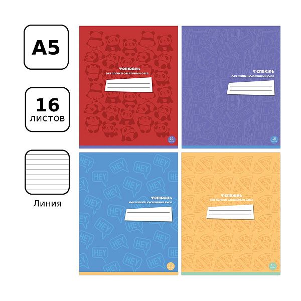 - Количество листов: Мы предлагаем тонкие тетради (12, 18, 24 листа) для младших классов и предметные тетради (48 листов и более) для старших школьников и студентов.