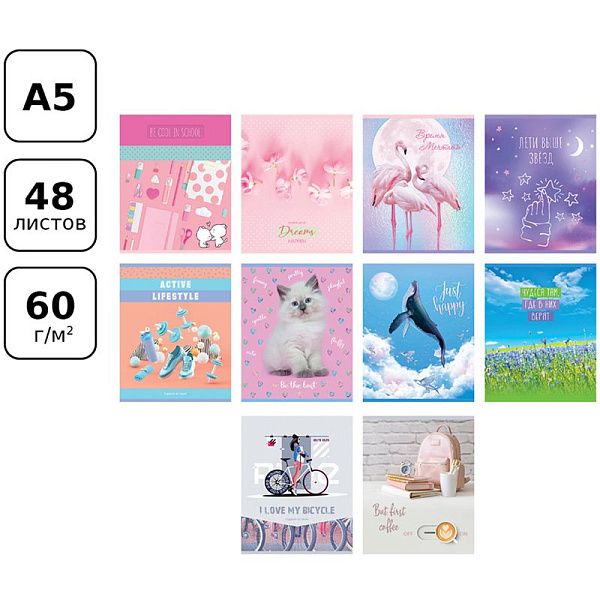 - Широкий ассортимент: Большой выбор тетрадей для учеников всех возрастов. -