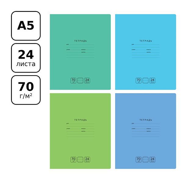 - Количество листов: Мы предлагаем тонкие тетради (12, 18, 24 листа) для младших классов и предметные тетради (48 листов и более) для старших школьников и студентов.