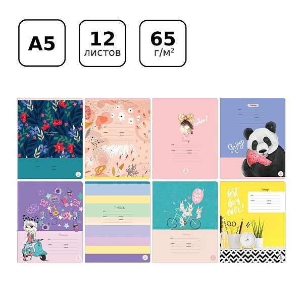 - Количество листов: Мы предлагаем тонкие тетради (12, 18, 24 листа) для младших классов и предметные тетради (48 листов и более) для старших школьников и студентов.