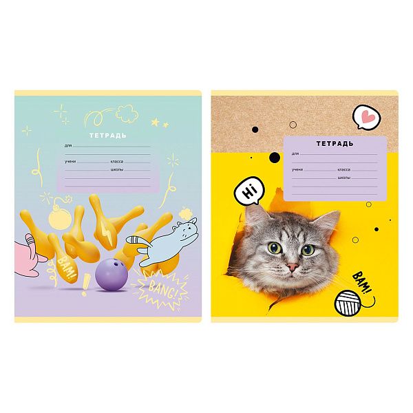 - Количество листов: Мы предлагаем тонкие тетради (12, 18, 24 листа) для младших классов и предметные тетради (48 листов и более) для старших школьников и студентов.