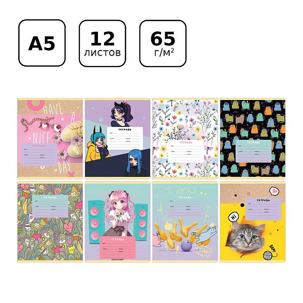 - Широкий ассортимент: Большой выбор тетрадей для учеников всех возрастов. -