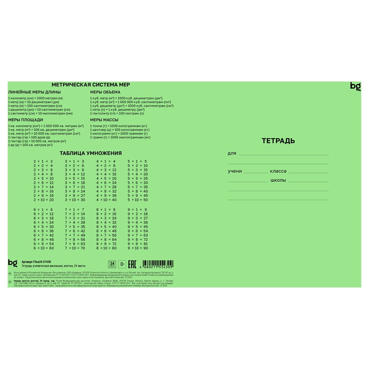 Тетрадь 24л., клетка BG