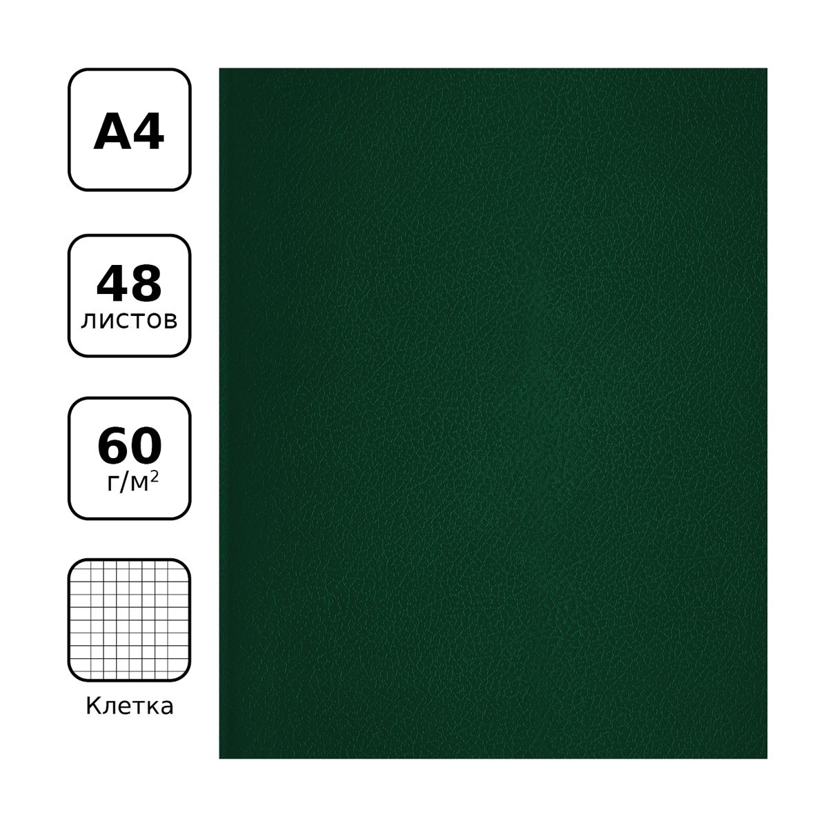 Тетрадь 48л., А4 клетка BG, бумвинил, зеленый