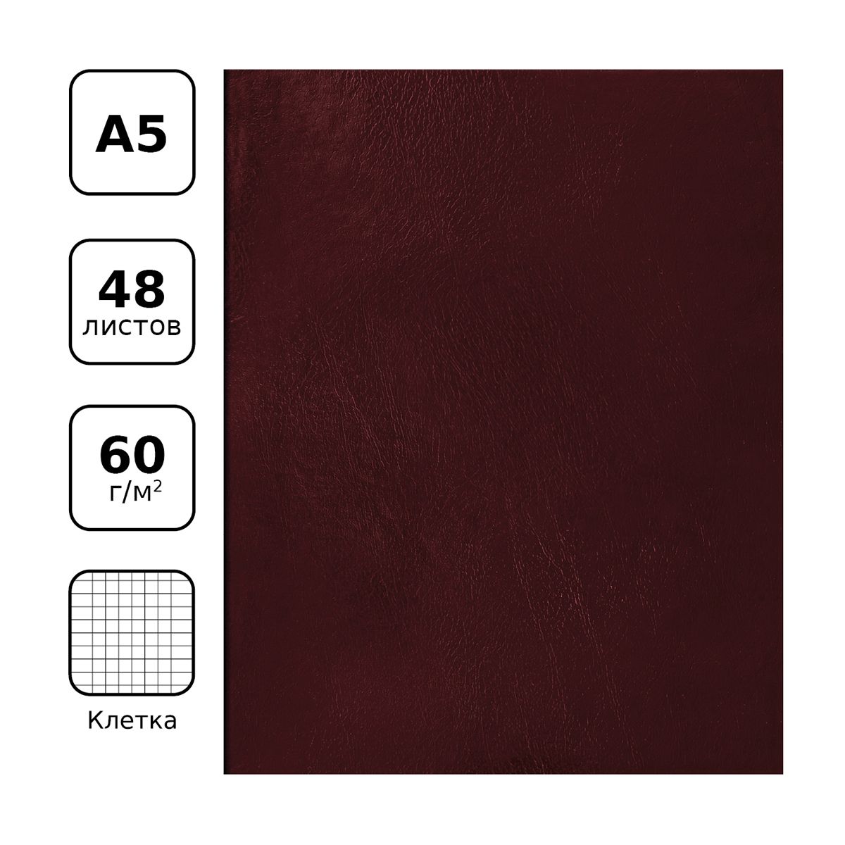 Тетрадь 48л., А5 клетка BG, бумвинил, бордовый