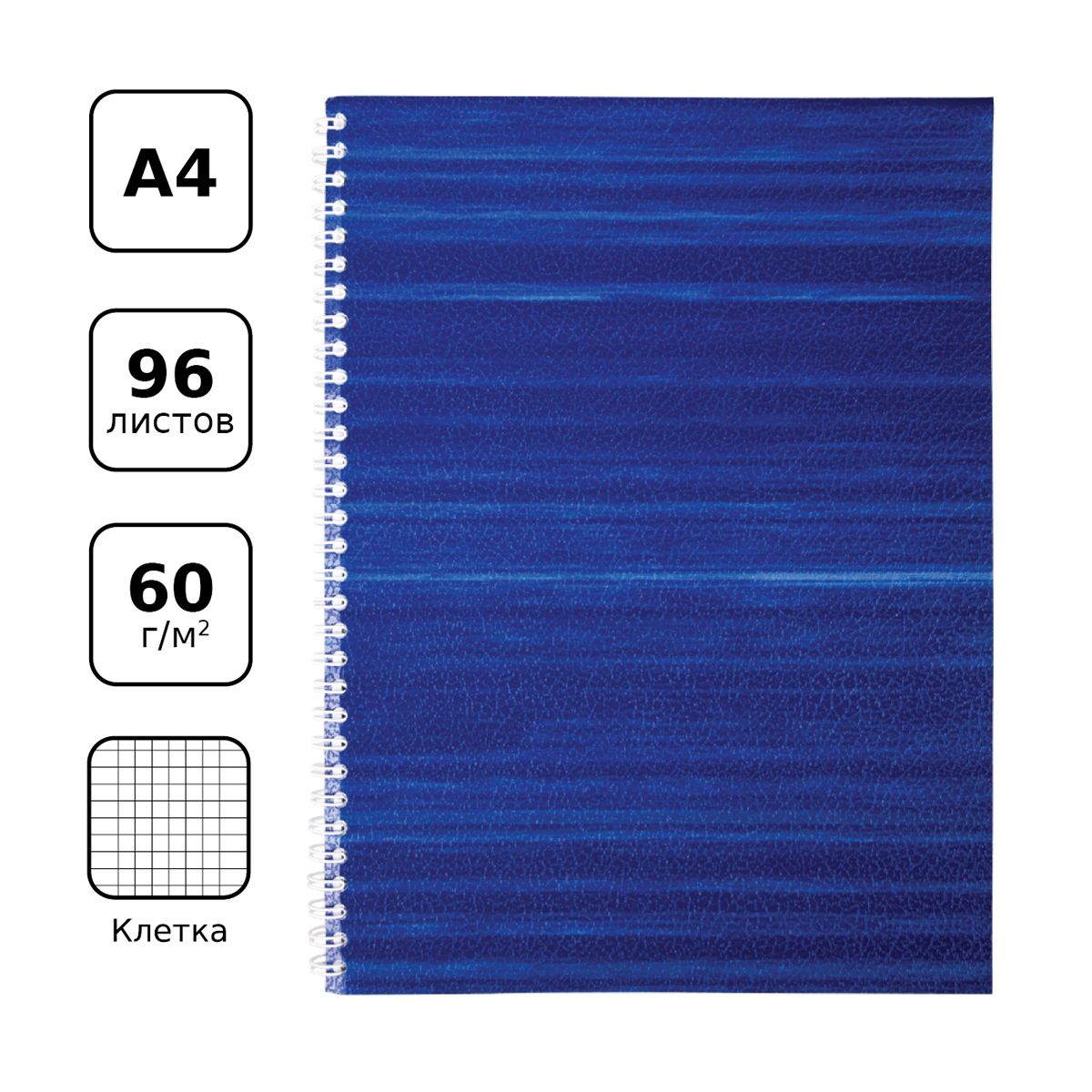 Тетрадь 96л., А4, клетка на гребне BG, бумвинил, синий