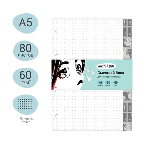 - Сменный блок для тетради на кольцах А5 или сменный блок 80 листов клетка даёт возможность обновлять тетрадь без покупки новой.