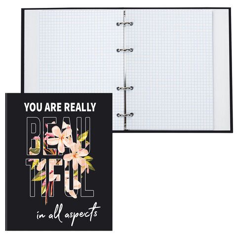 - Тетрадь на пластиковых кольцах А5 обеспечивает плавное перелистывание.