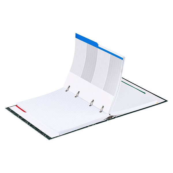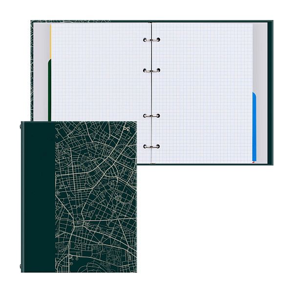 - Тетрадь на кольцах А5 раскрывается на 360 градусов, упрощая запись.
