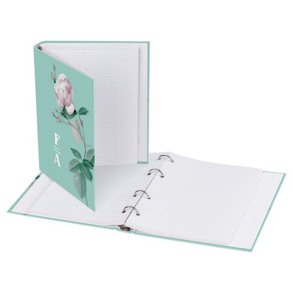 - Тетрадь на кольцах А5 раскрывается на 360 градусов, упрощая запись.