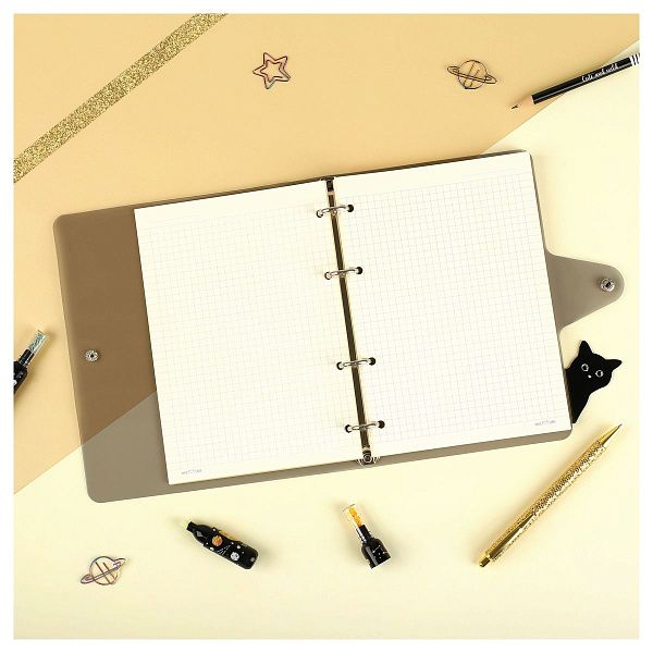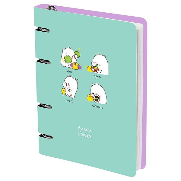- Тетрадь на пластиковых кольцах А5 обеспечивает плавное перелистывание.