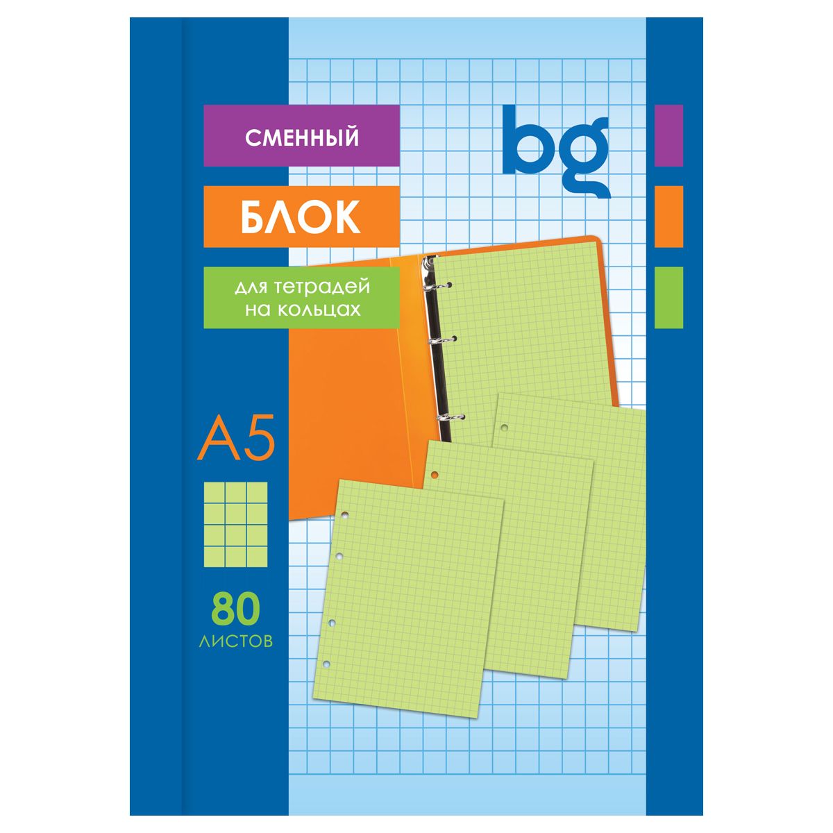Сменный блок 80л., А5, BG, зеленый, пленка т/у, с вкладышем