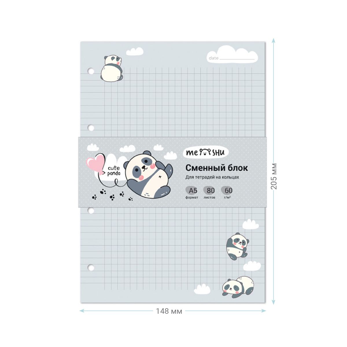 Сменный блок 80л., А5, MESHU "Cute panda", пленка т/у, в клетку