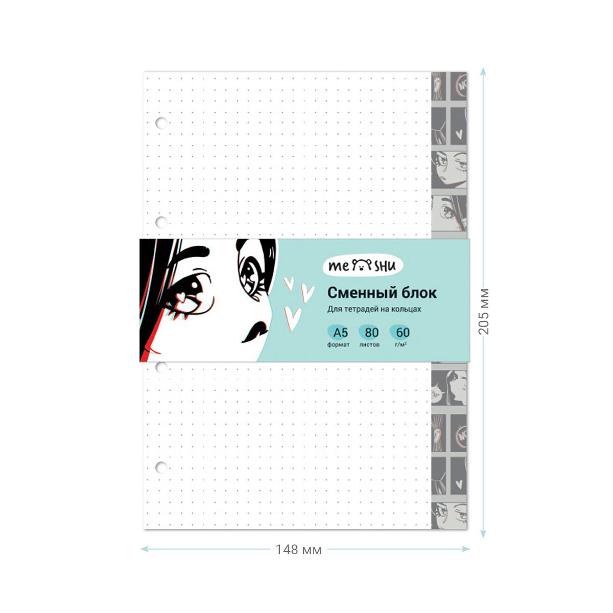 Сменный блок 80л., А5, MESHU "Kawaii", пленка т/у, в точку