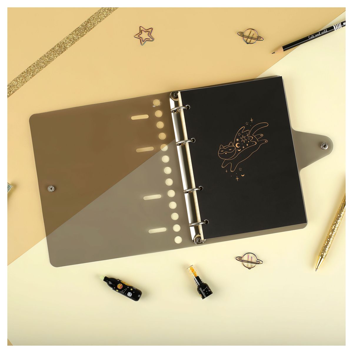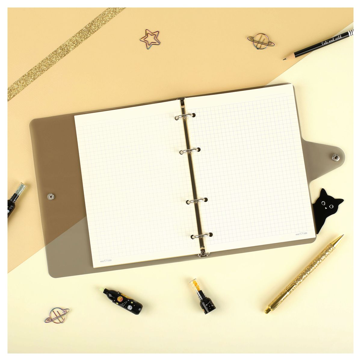 Тетрадь на кольцах 120л., А5, клетка MESHU "Black cat", с пластиковой обложкой
