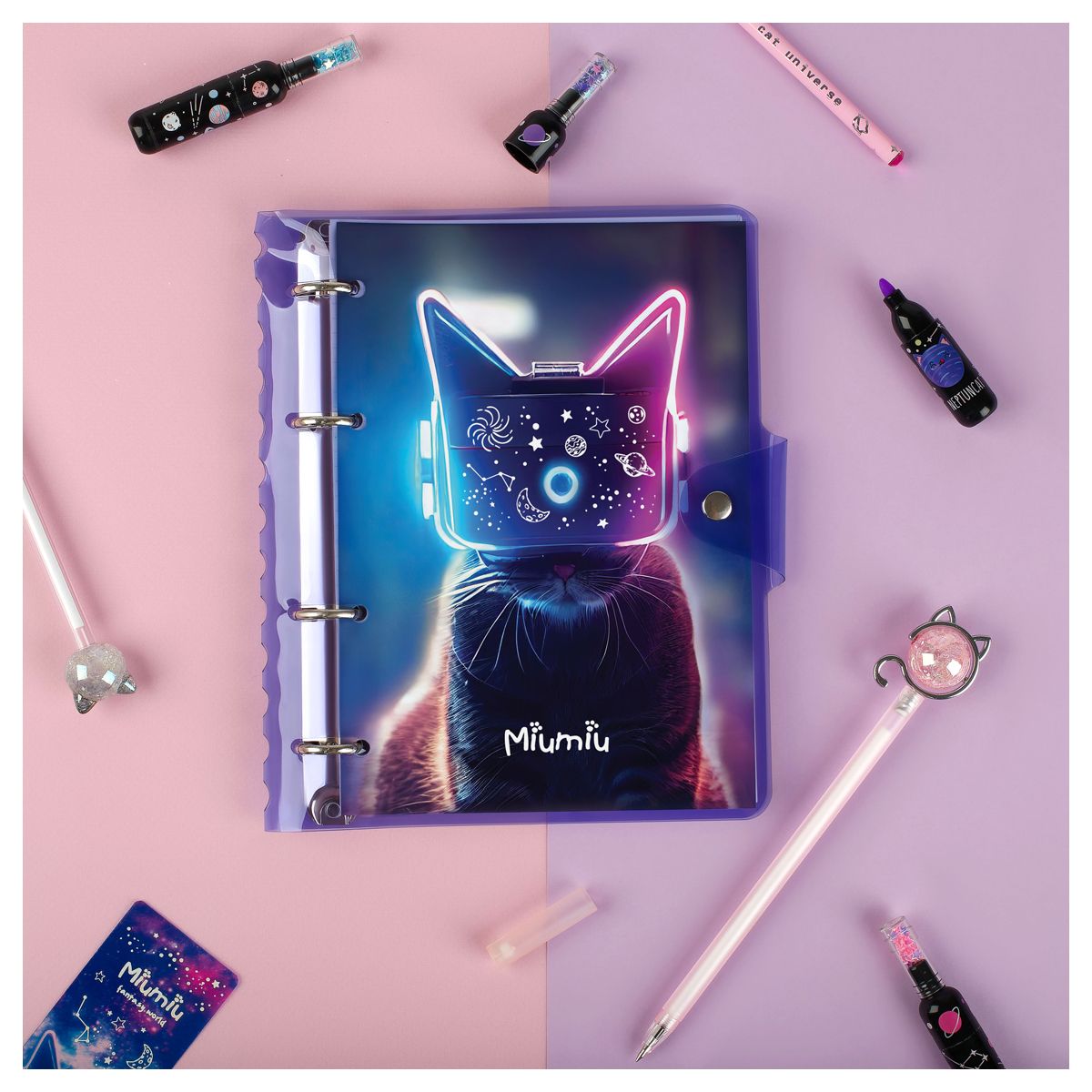 Тетрадь на кольцах 120л., А5, клетка MESHU "Miumiu", с пластиковой обложкой