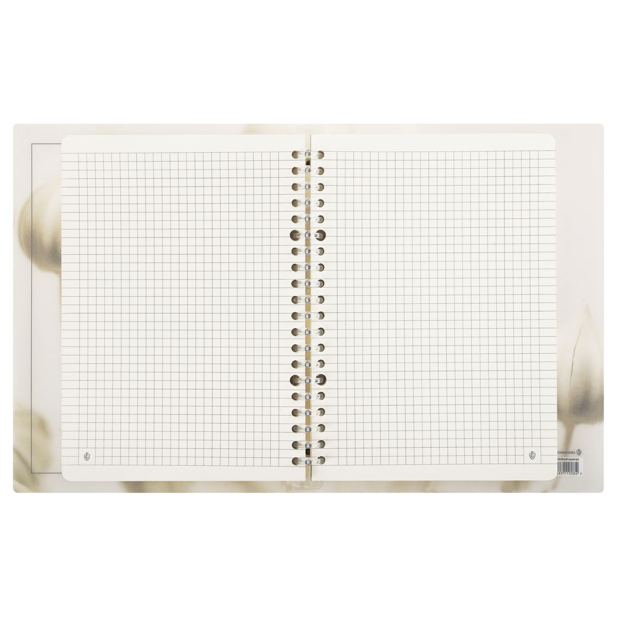 Внутренний блок состоит из 80 листов высококачественной кремовой бумаги повышенной плотности 80 г/м2. Линовка – клетка без полей. В комплекте 4 пластиковых разделителя, которые позволят организовать записи по темам или предметам.